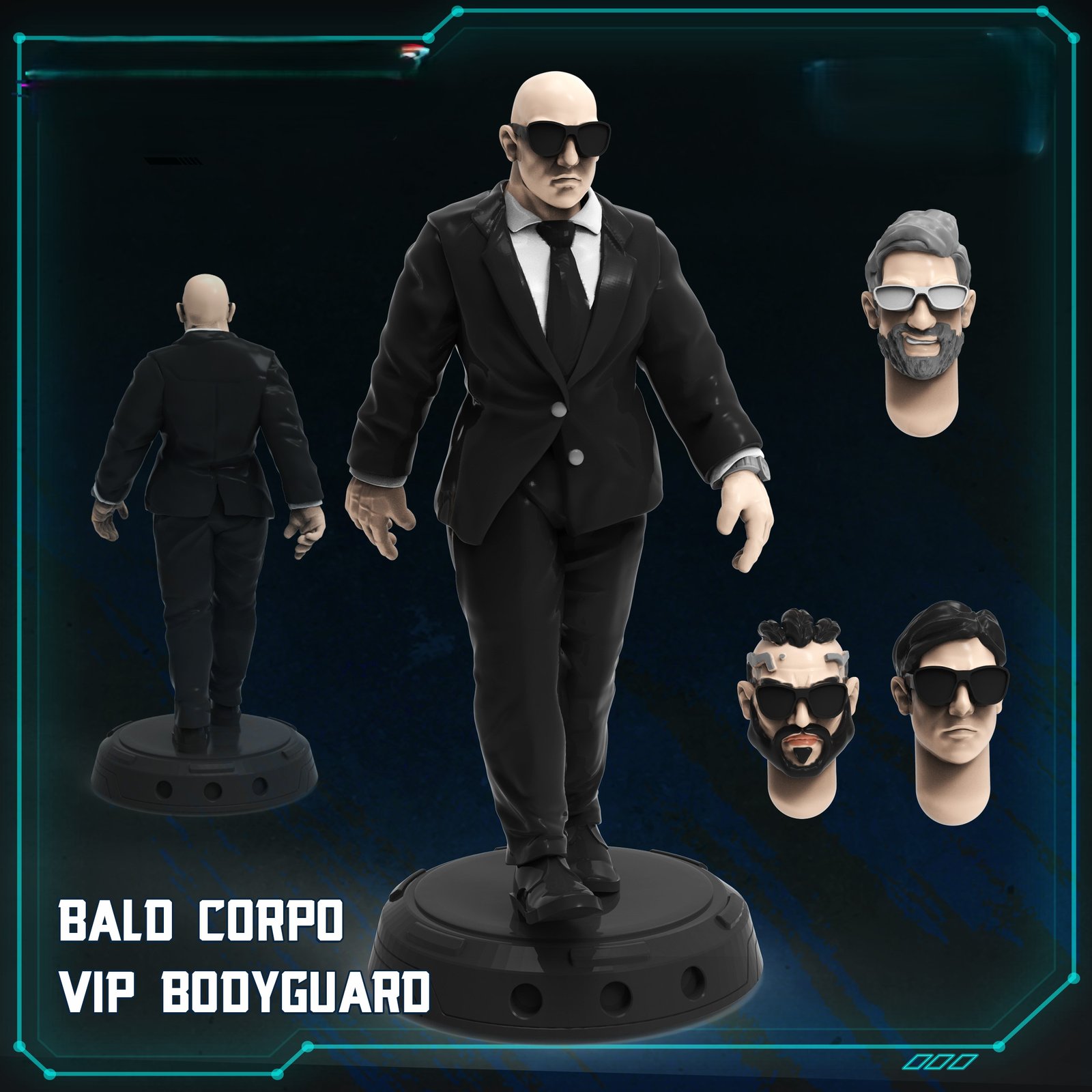 Modern VIP bodyguard Bold with interchangeable heads and detailed suit, perfect for collectors and display.