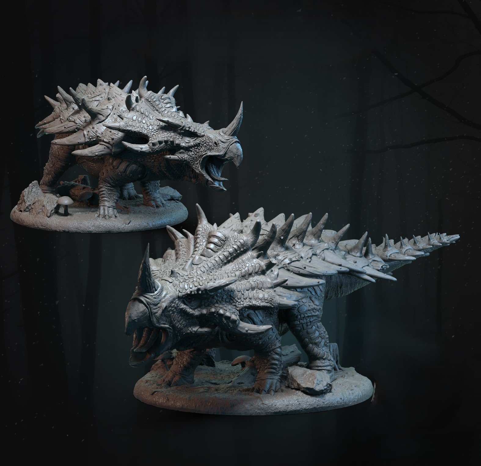 Armored reptilian beast with spikes and heavy detail, ideal as a wild creature or exotic encounter model.