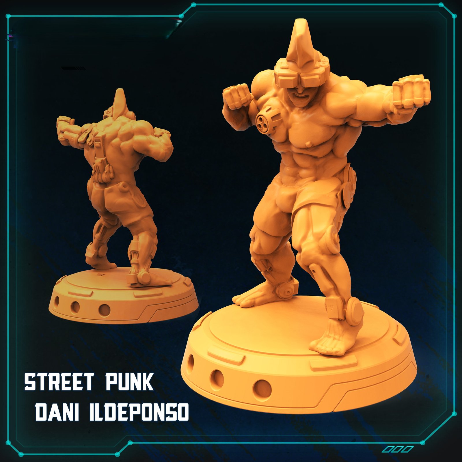 Stylized 3D printable Dani Ildeponso street punk fighter with futuristic design and dynamic pose, perfect for display and collectors.