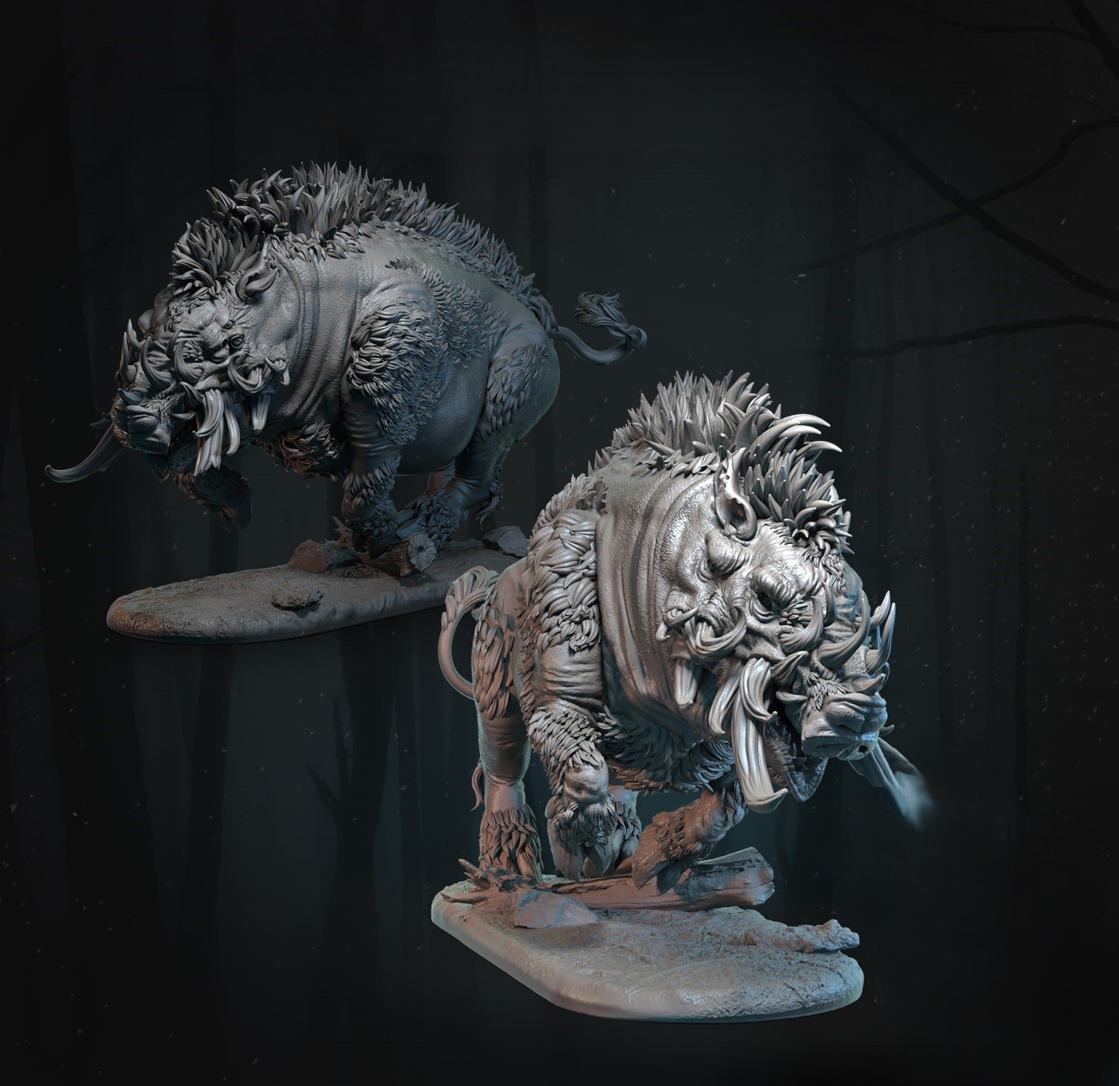 Savage dire boar with dynamic pose and heavy detail, perfect as a wild beast or encounter creature.