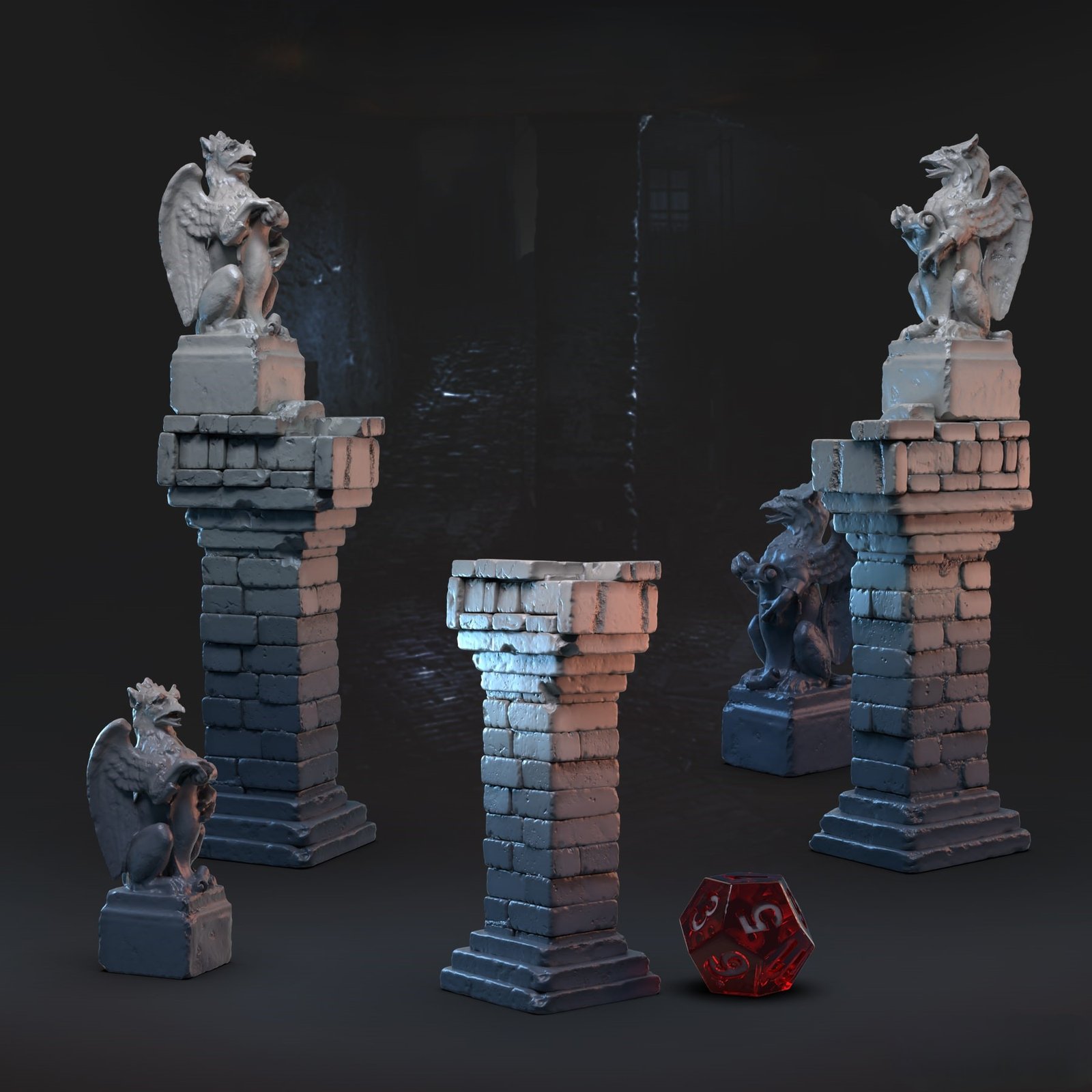 Column and chimera scenery with supported/unsupported meshes, solid column options, and Lychee projects.