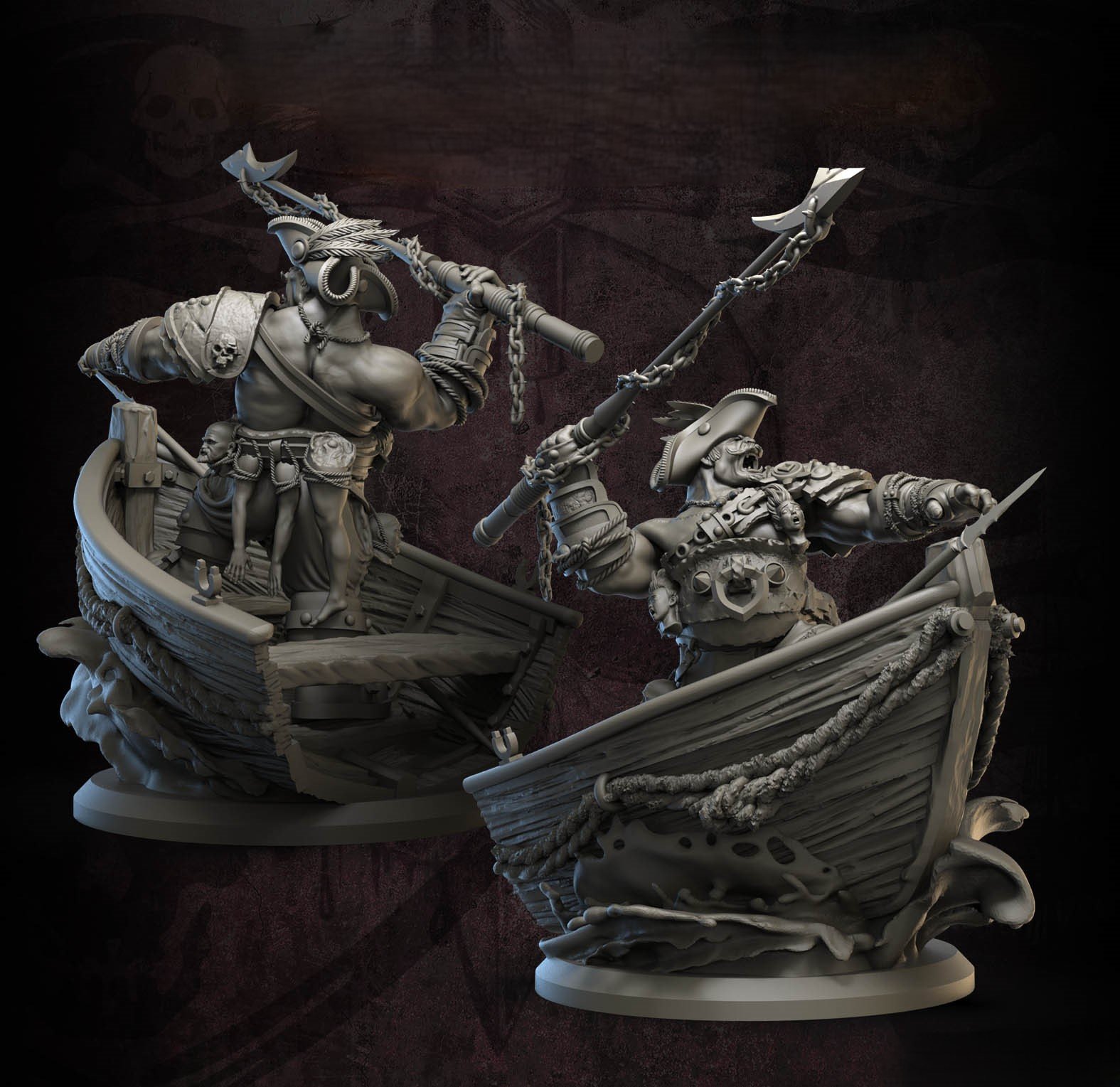 Massive ogre pirate with harpoon, ideal as a powerful boss or centerpiece miniature.