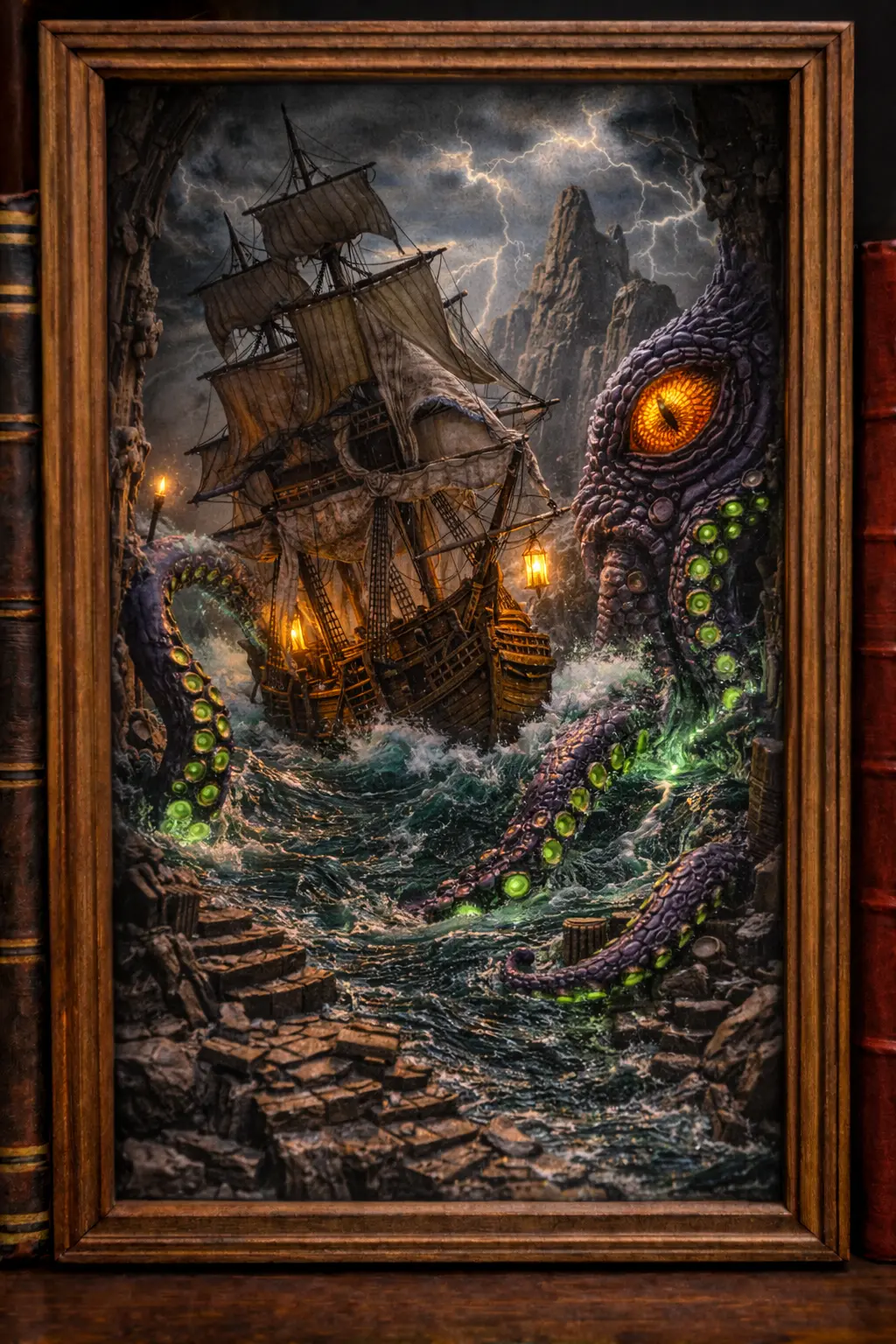 Kraken Book Nook — downloadable STL bundle, ready to print.