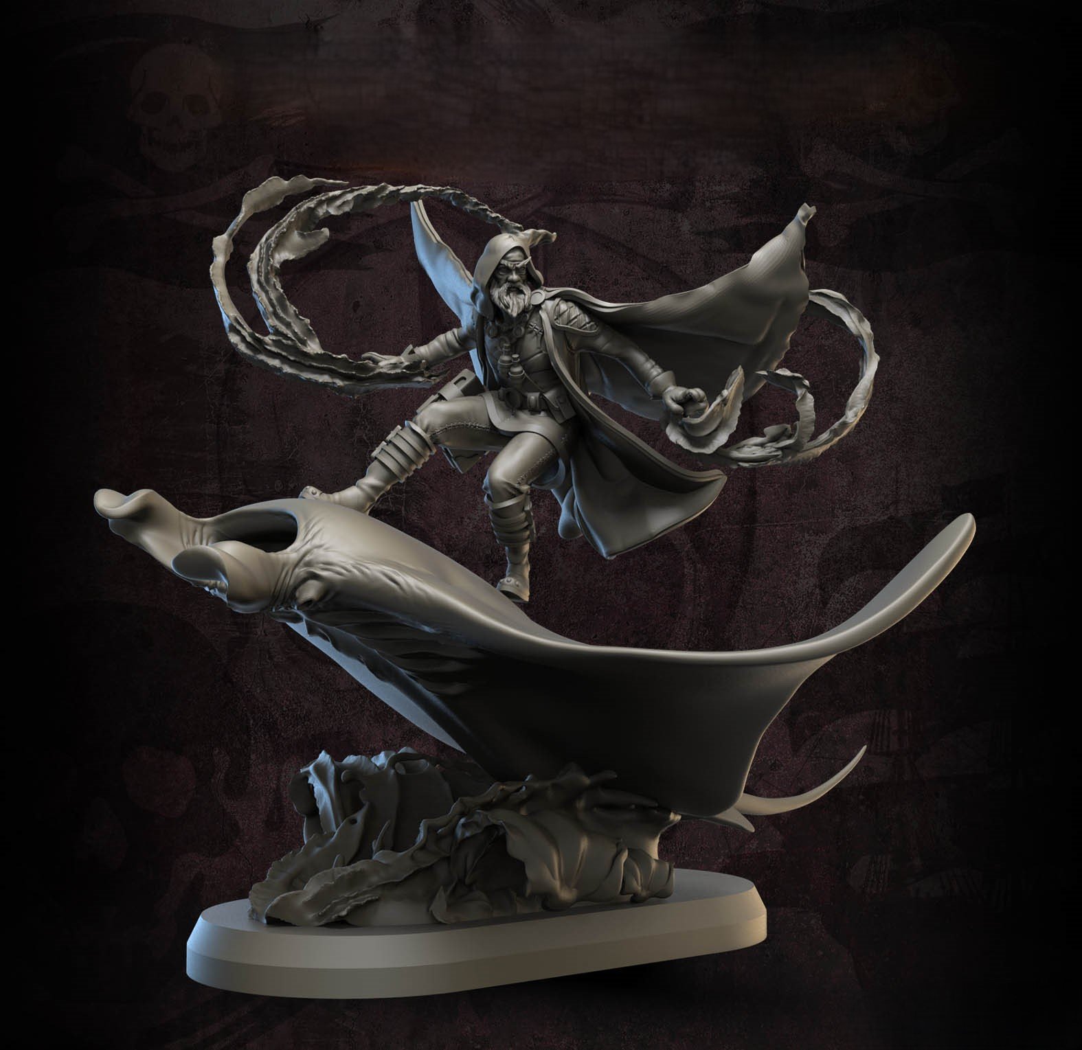 Mounted water mage riding a manta ray, perfect for unique spellcaster or aquatic units.