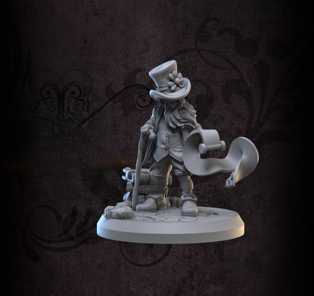 Stocky red-bearded character miniature with pre-supported resin files and promo imagery.