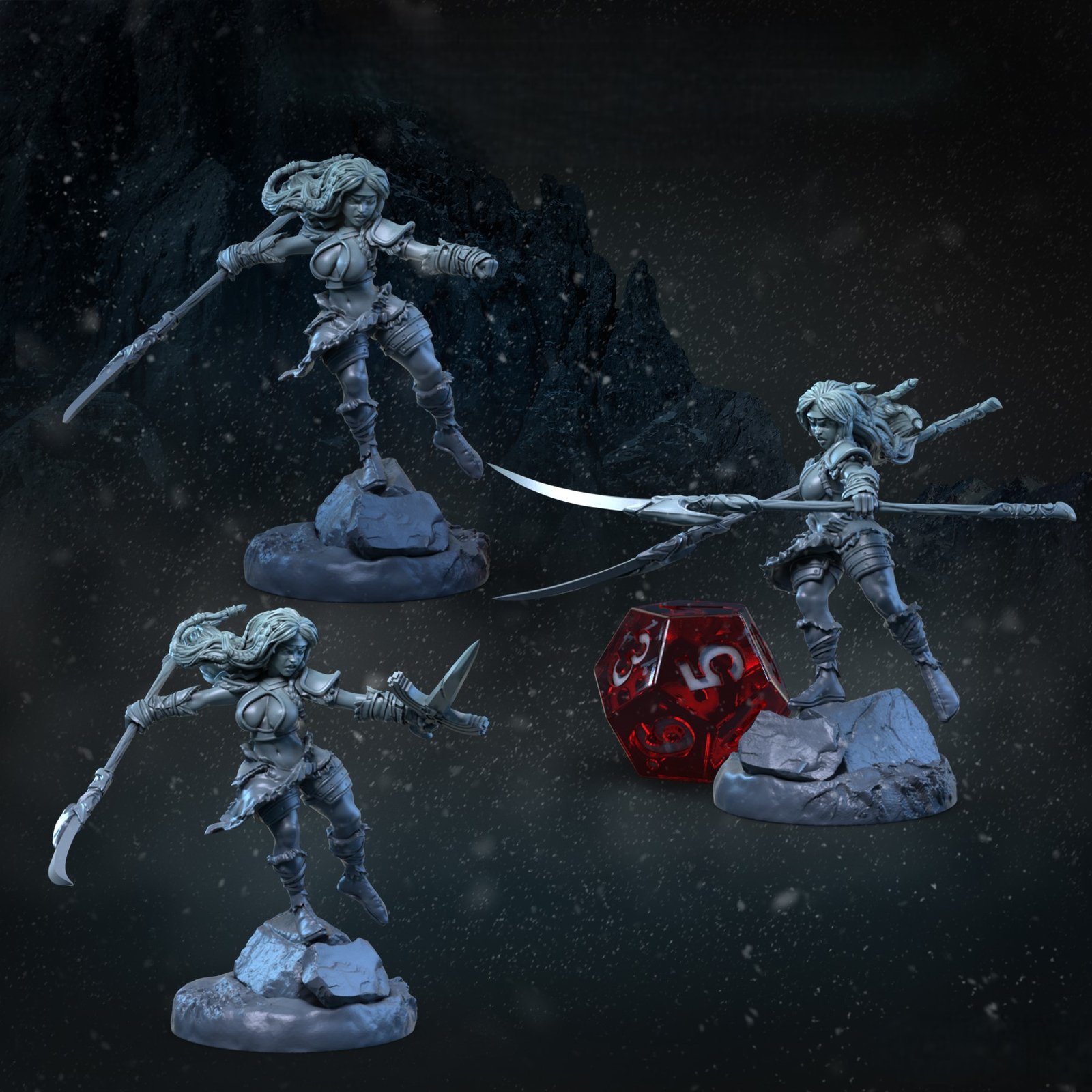 Agile giant-slayer heroine miniature, perfect for action-packed encounters and heroic campaigns.
